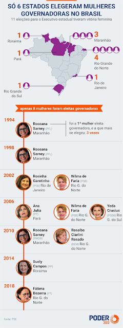 Só 6 Estados brasileiros elegeram mulheres governadoras em toda a história da República.