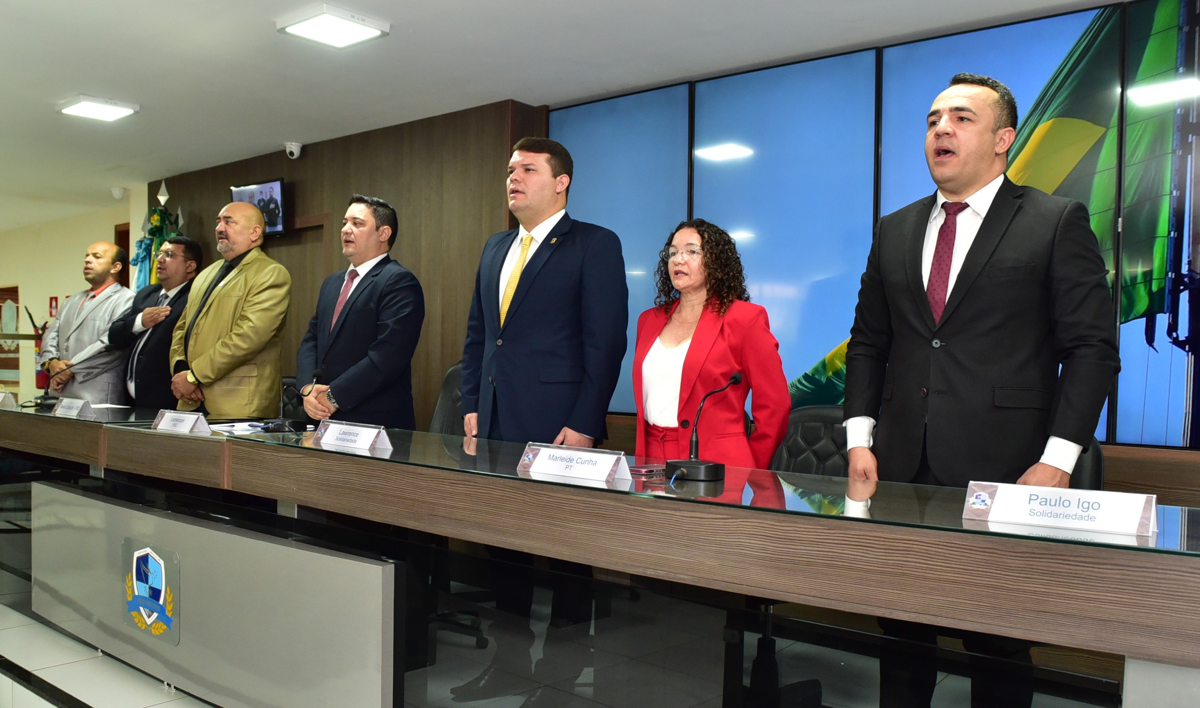 Lamarque, 2º vice-presidente da Mesa no biênio anterior (2021/2022), abriu a sessão. Executado o hino nacional, Lawrence prestou juramento de posse, de pé na tribuna e com o braço direito estendido – mesma postura dos demais membros da Mesa.